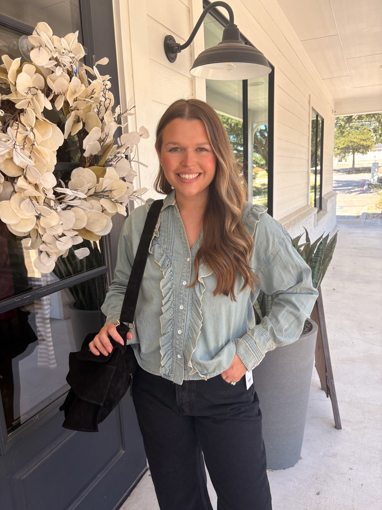 Ruffled details give this oversized chambray button-down from We The Free the perfect dose of femme flair.