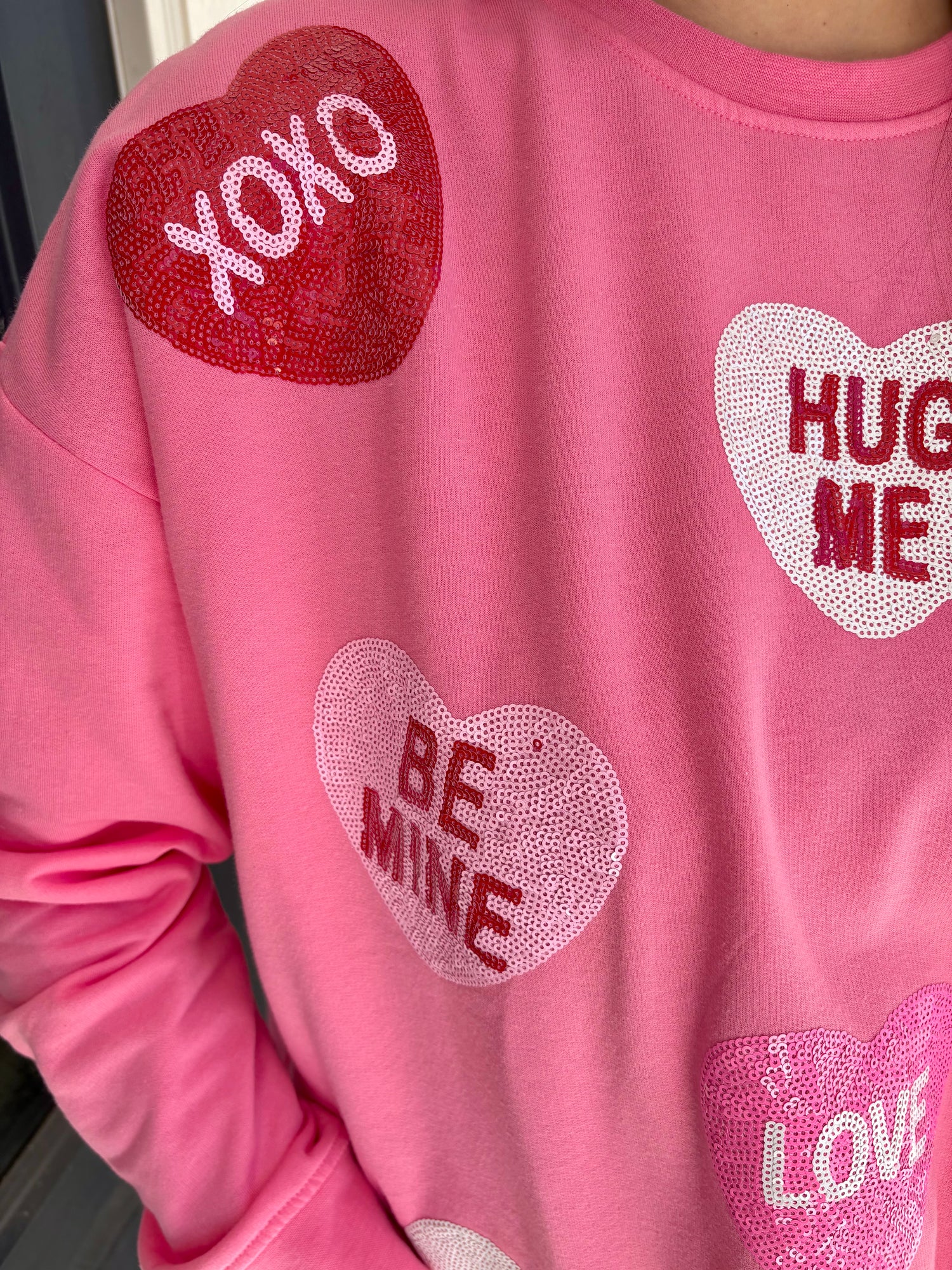 The Valentine Sparkle Sweatshirt is a stylish and comfortable addition to your wardrobe, perfect for adding a touch of glamour to any casual outfit. Crafted from a high-quality cotton blend, this sweatshirt offers a soft and cozy feel, ensuring all-day comfort. The eye-catching sequin appliqués add a dazzling sparkle, making it ideal for special occasions or simply brightening up your everyday look. Designed with ribbed sleeve openings and hem, it provides a snug fit that retains its shape wear after wear. With a versatile one-size-fits-most design, it accommodates a range of body types, measuring approximately 27 inches from shoulder to hem for a flattering silhouette. Composed of 59% cotton and 41% polyester, this sweatshirt combines durability with breathability, making it a must-have piece for any fashion-forward individual.