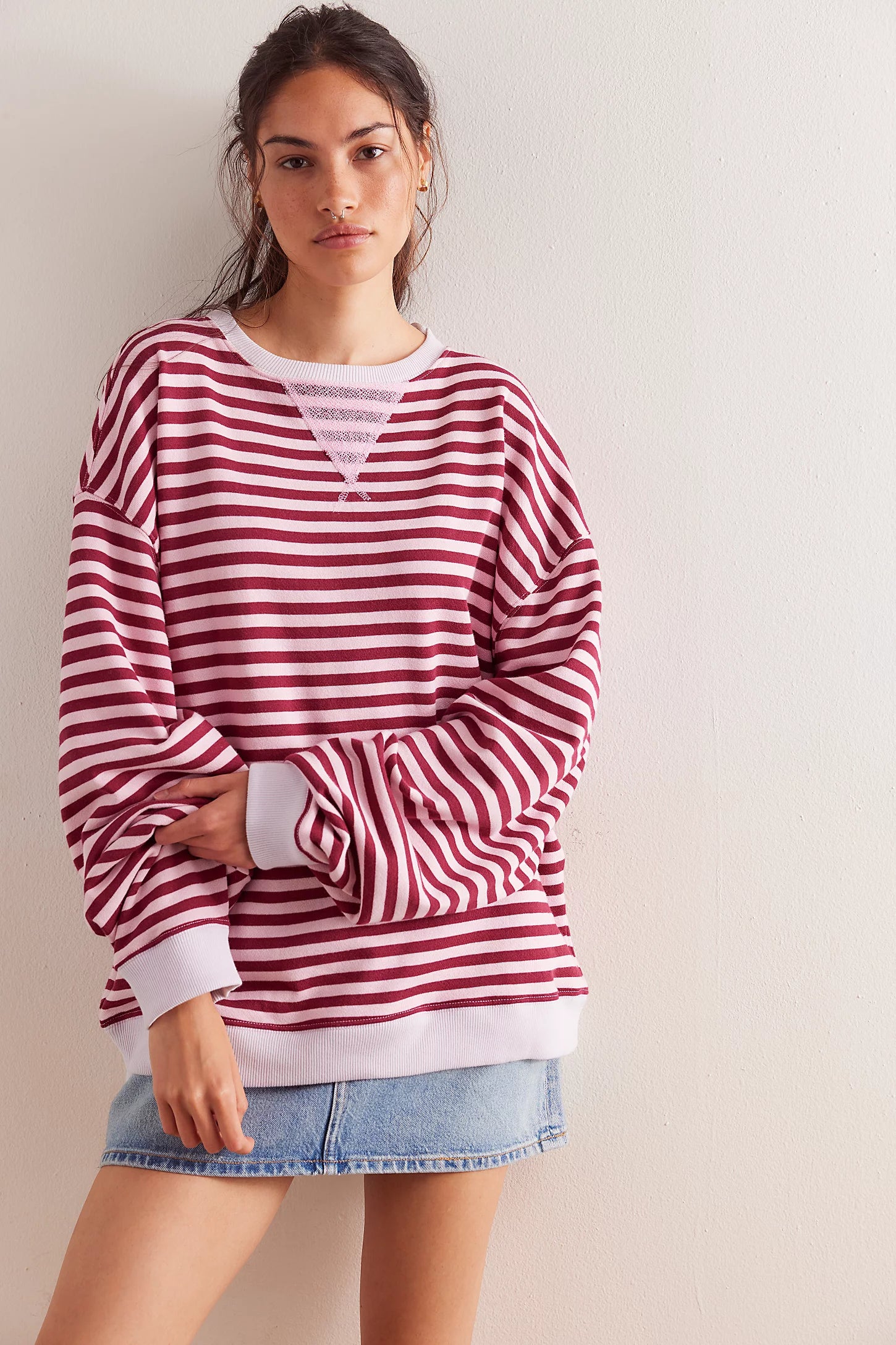 So cool and classic, this timeless crewneck is featured in an oversized, slouchy silhouette and staple striped print with contrasting hems for added dimension.