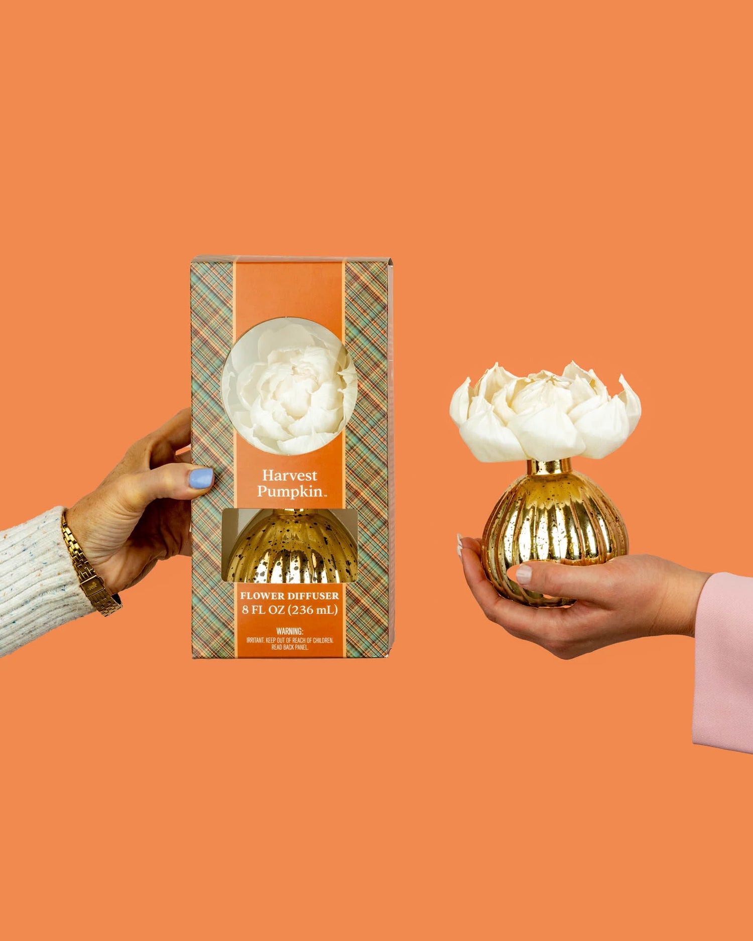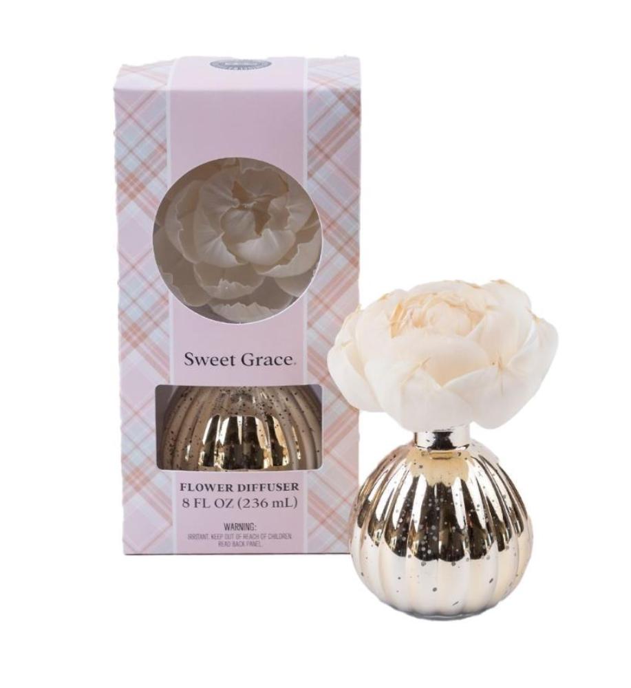 Add a touch of glamour to your holiday decor with our Holiday Flower Diffuser, featuring a shimmering gold and silver mercury finish that exudes elegance. Enjoy the beloved fragrance as it infuses your space with warmth and cheer. Lasting over 60 days, the neutral-colored flower adds beauty to any setting, making it the perfect accent for your festive celebrations.
