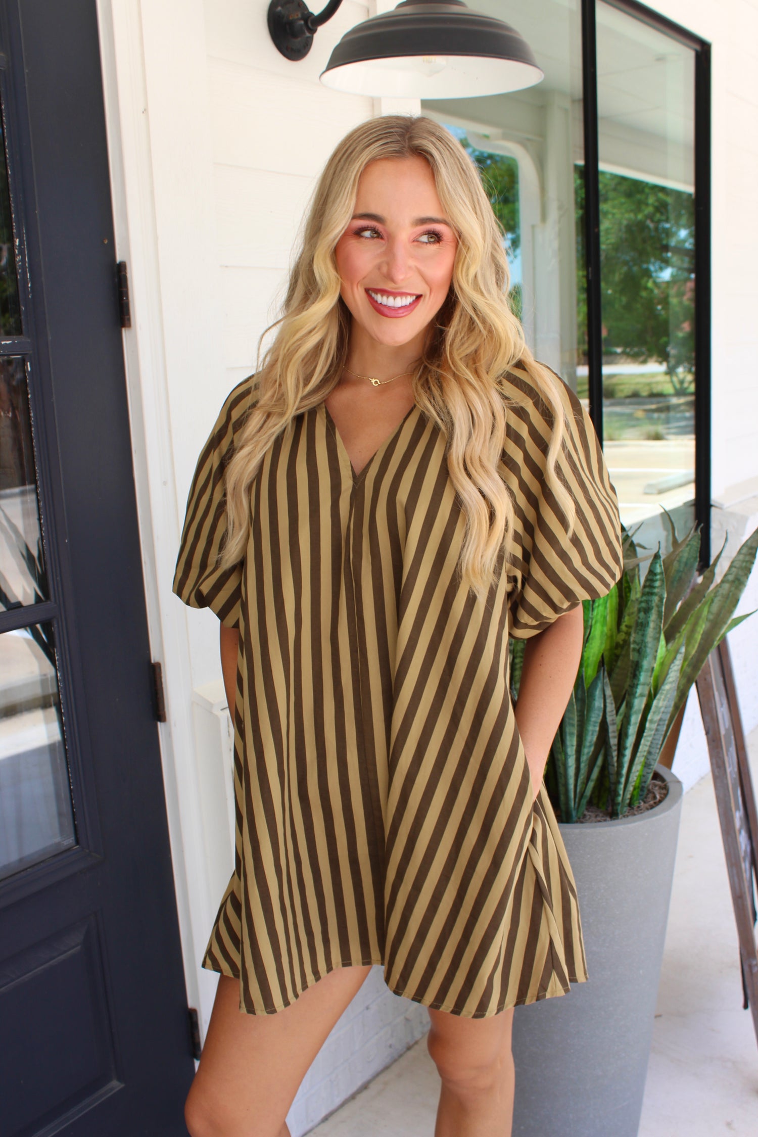 This 'Fall Feels Striped Dress' is equal parts chic and comfortable. The puff sleeves and v-neckline add a touch of style, while the side pockets provide convenience. Perfect for any occasion, this dress is sure to make you stand out and feel confident!