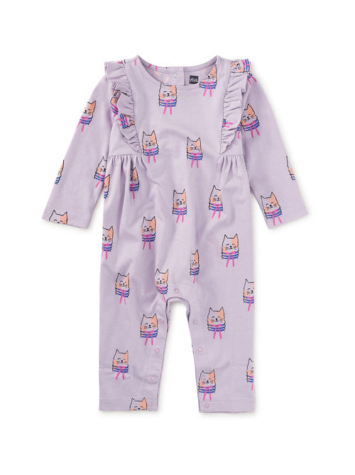Bowtie Cats Ruffle Shoulder Baby Romper