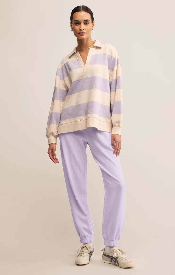 Designed in brushed fleece for a lived-in feel, this relaxed collared pullover features a hi-low hem and drop shoulders for a comfy, casual silhouette. Lightweight enough for layering, it's one you'll reach for all year.
