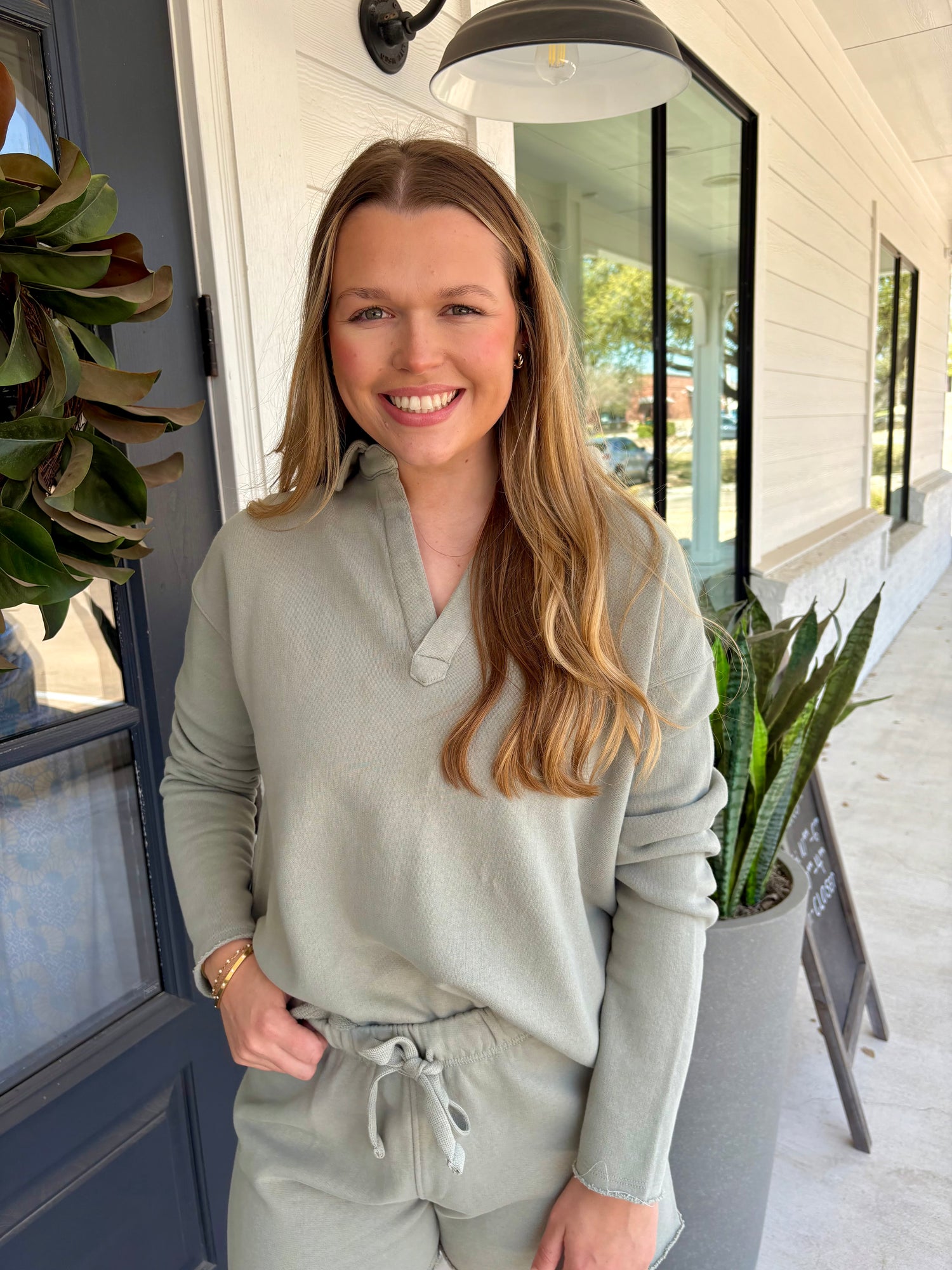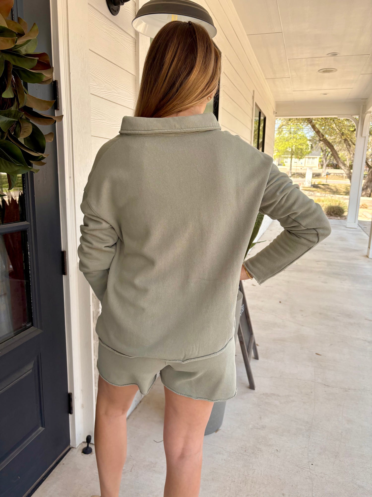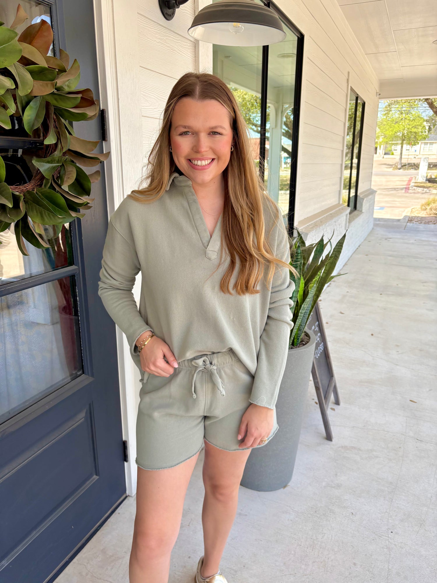 You can feel both casual and perfectly put together in this super cute terry knit sweatshirt! Featuring a comfy v neckline, and long sleeves with drop shoulder, all in a semi-cropped style. Just right for those who want their fashion to feel cozy! Grab the matching Malibu Shorts for an everyday perfect outfit!
