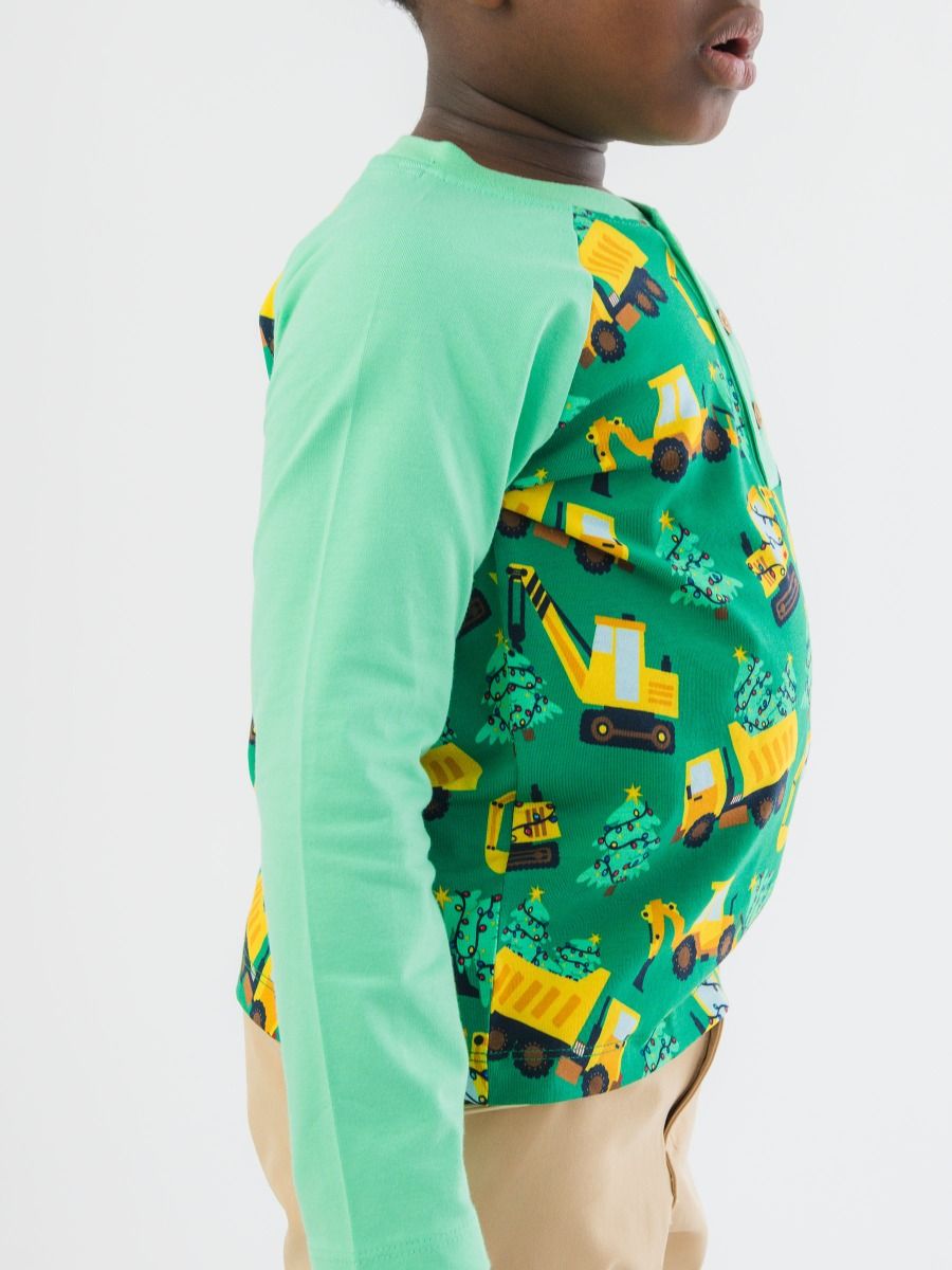 Ideal for the festive season, the Holiday Haul Long Sleeve Raglan Henley Tee is a must-have in your boy's wardrobe, combining functionality with a fashionable flair. This green raglan sleeve henley is sure to be a hit, making it the ideal holiday casual shirt for boys who love to look good and feel great.
