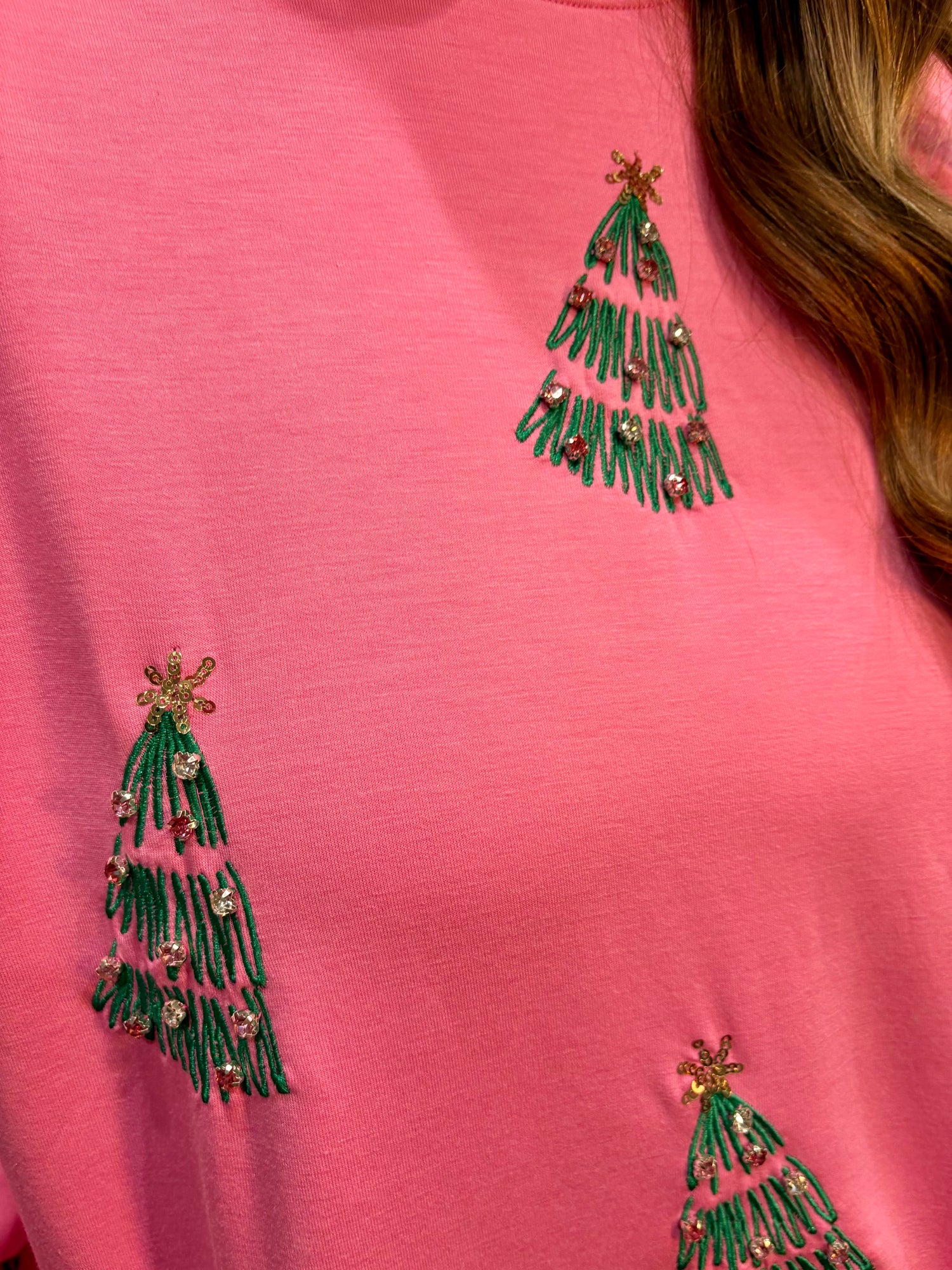 Celebrate the season in cozy, effortless style with the Green Trees Sarah Sweatshirt. Featuring a classic crew neckline, relaxed drop shoulders, and ribbed trim, it offers a comfortable, relaxed fit perfect for holiday gatherings, winter outings, or cozy days at home. Soft, snuggly, and full of festive charm, the Green Trees Sarah Sweatshirt is a seasonal must-have for your wardrobe.