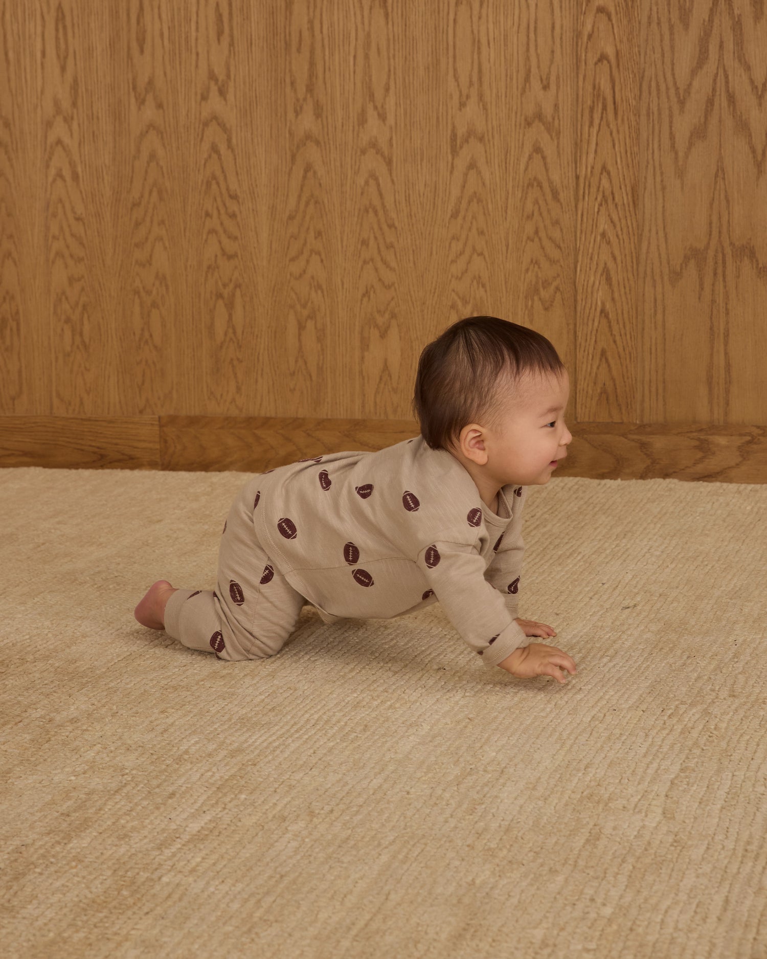 Featuring our 'football' print on our 'stone' hue.