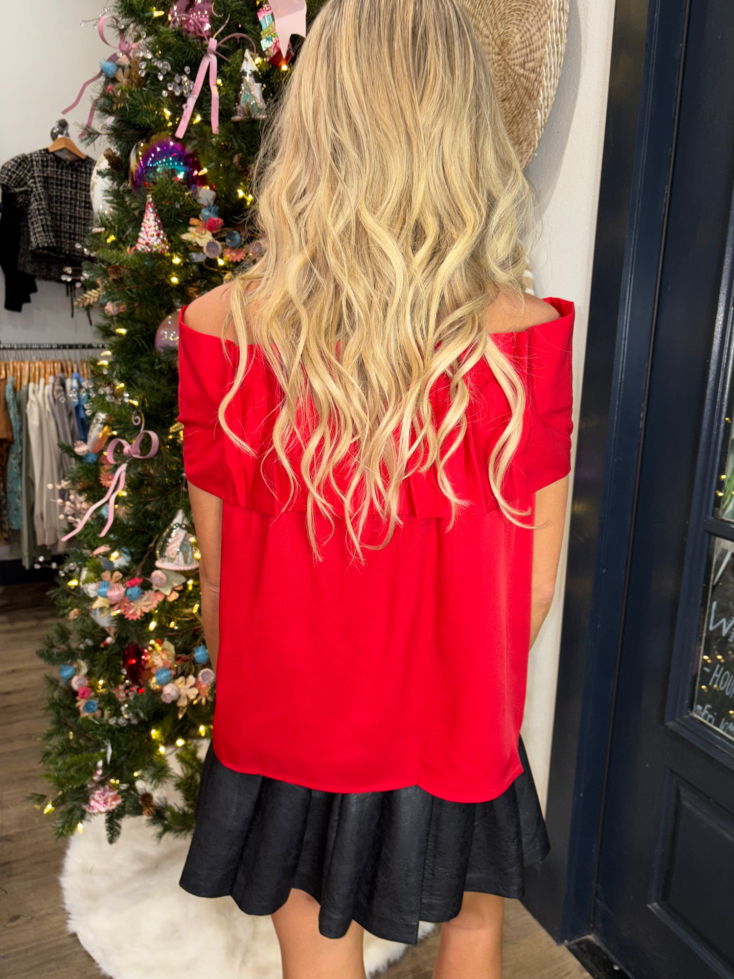 This top is the perfect blend of elegance and comfort. Its elastic, off-the-shoulder style allows for a flexible fit, while the premium fabric adds a touch of luxury. Lined for coverage, this off shoulder design will make you stand out in any crowd! This is the PERFECT top for any holiday event!