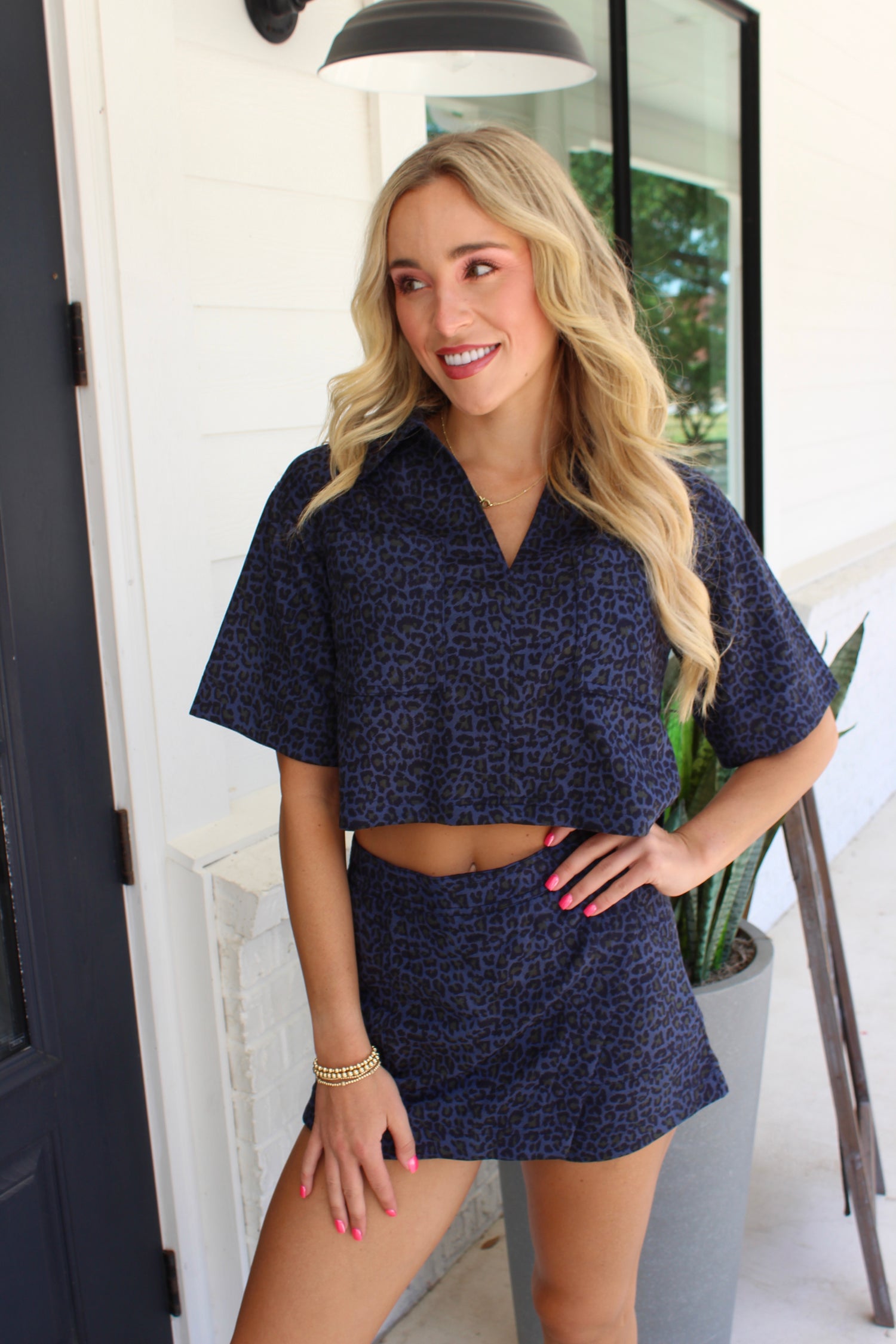 Unleash your playful side in the 'She's Wild Skort'. A bold and modern co-ord featuring a a fun mini skort. Designed in a tonal animal print with a subtle sheen, this head-turning skort blends structured tailoring with off-duty ease. The sleek mini skort offers just the right amount of curve-hugging shape with a flattering, easy fit. Wear together with the 'She's Wild Shirt' for an effortless statement or mix and match for endless styling potential. From rooftop brunches to spontaneous city nights.