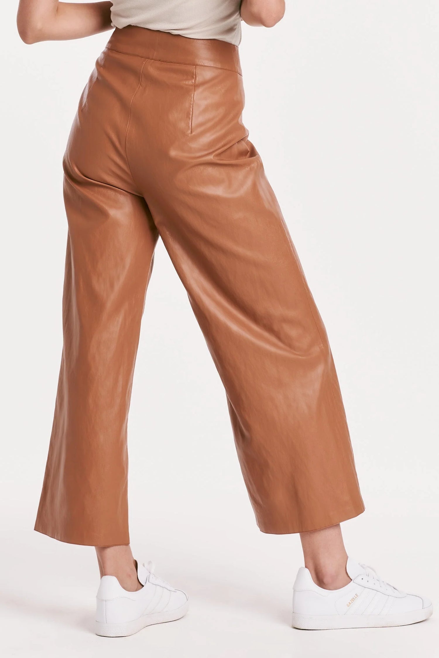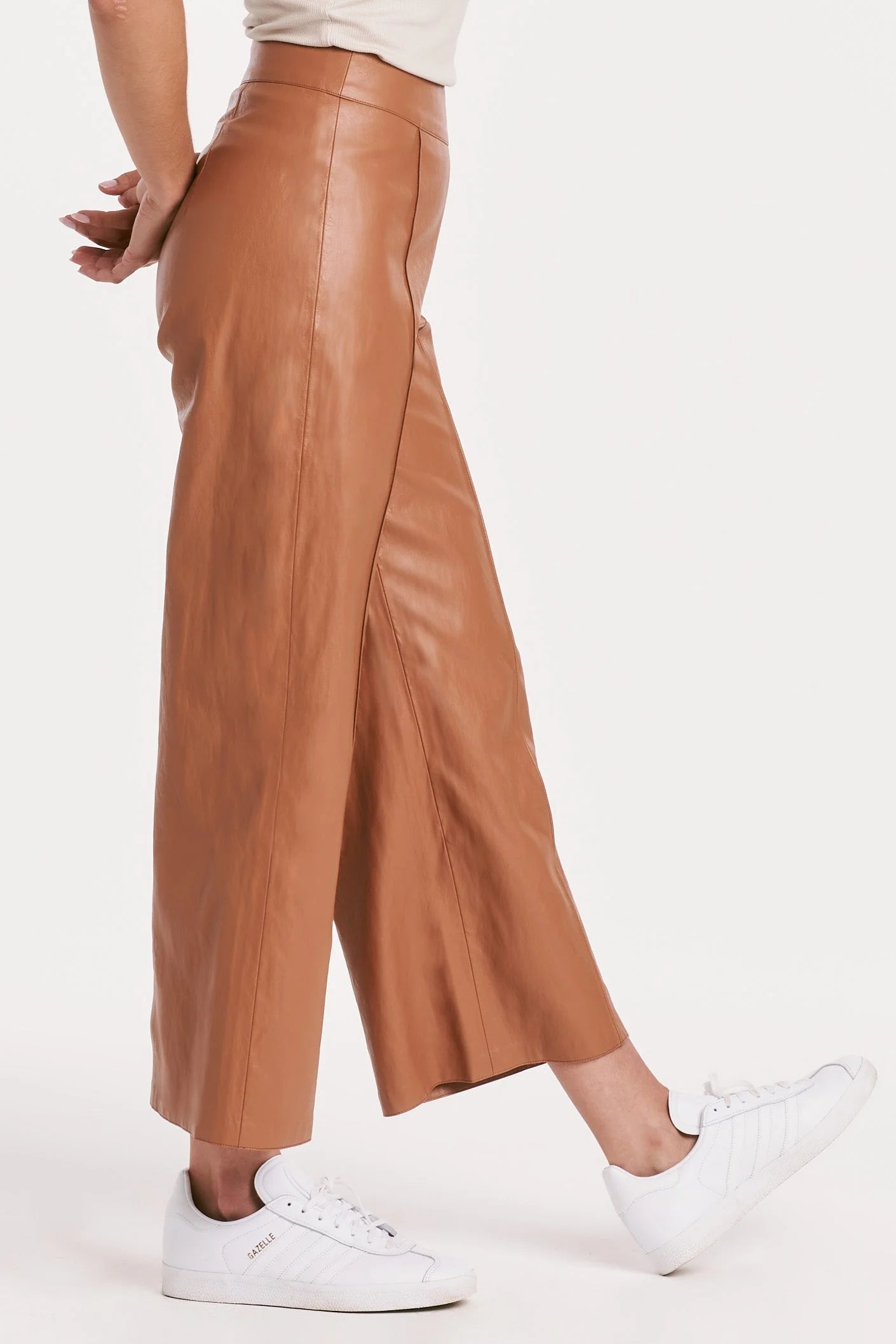 Shine in the SPARKLE WIDE LEG cropped pants! Made with vegan leather, these stylish pants have a side zipper, pintuck seams, and a back dart for support. The woven fabric provides a relaxed fit and a touch of chic.
