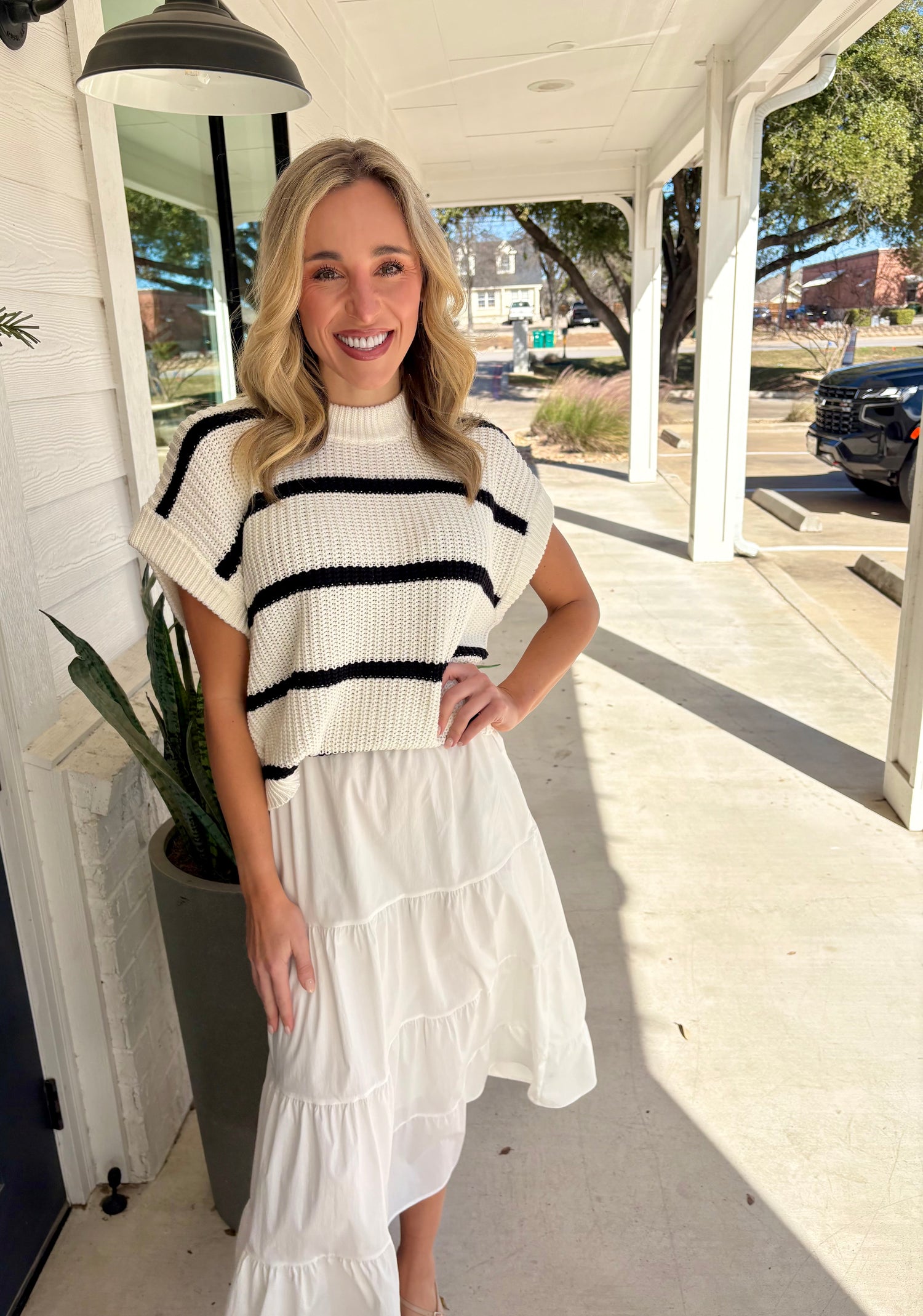 The 'My Favorite Day Midi Dress' is a modern blend of comfort and style. Featuring a soft knit sweater top and a flowy tiered midi skirt, this piece combines structure with elegance. Its relaxed silhouette makes it perfect for casual outings or easy days, while the contrasting textures add a unique and stylish touch! Add to cart now! This one is sure to go quick!!