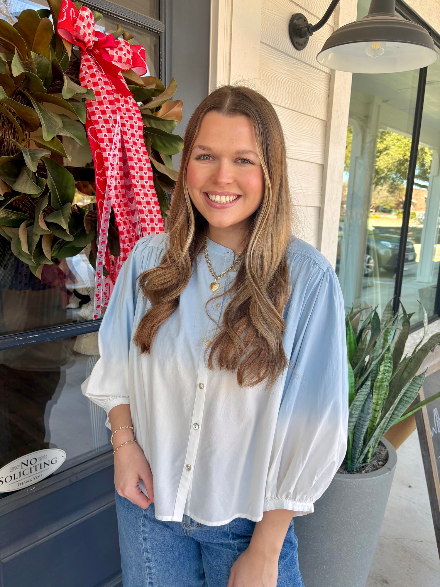 With an oversized button-up design, it serves as a versatile everyday blouse, effortlessly styled as a short sleeve button-up or a classic cloudy blue button-down.