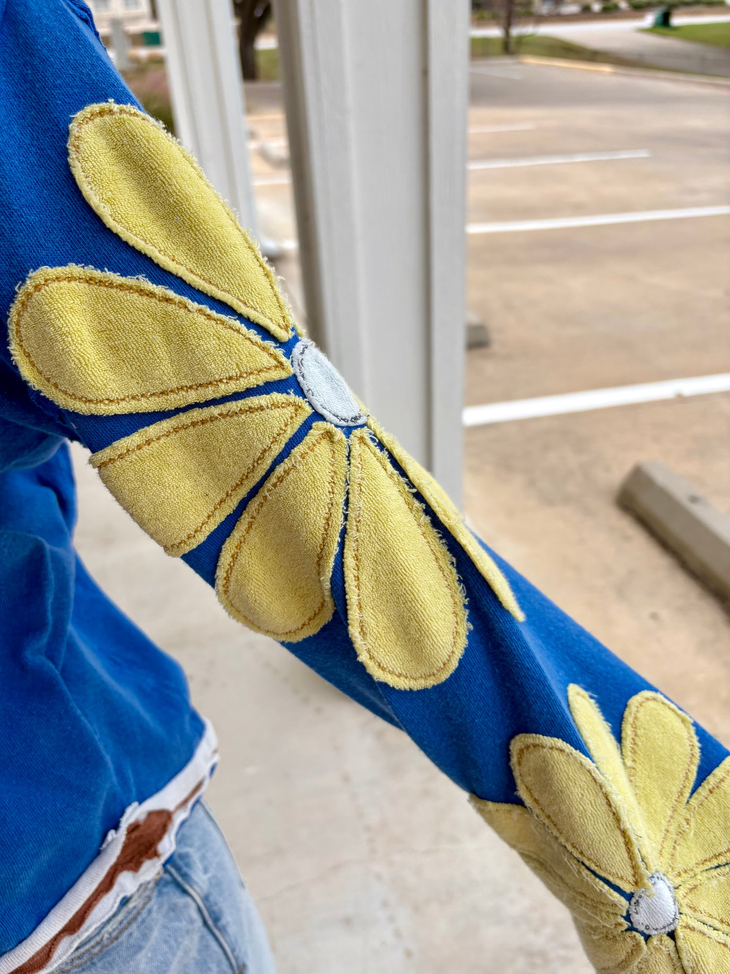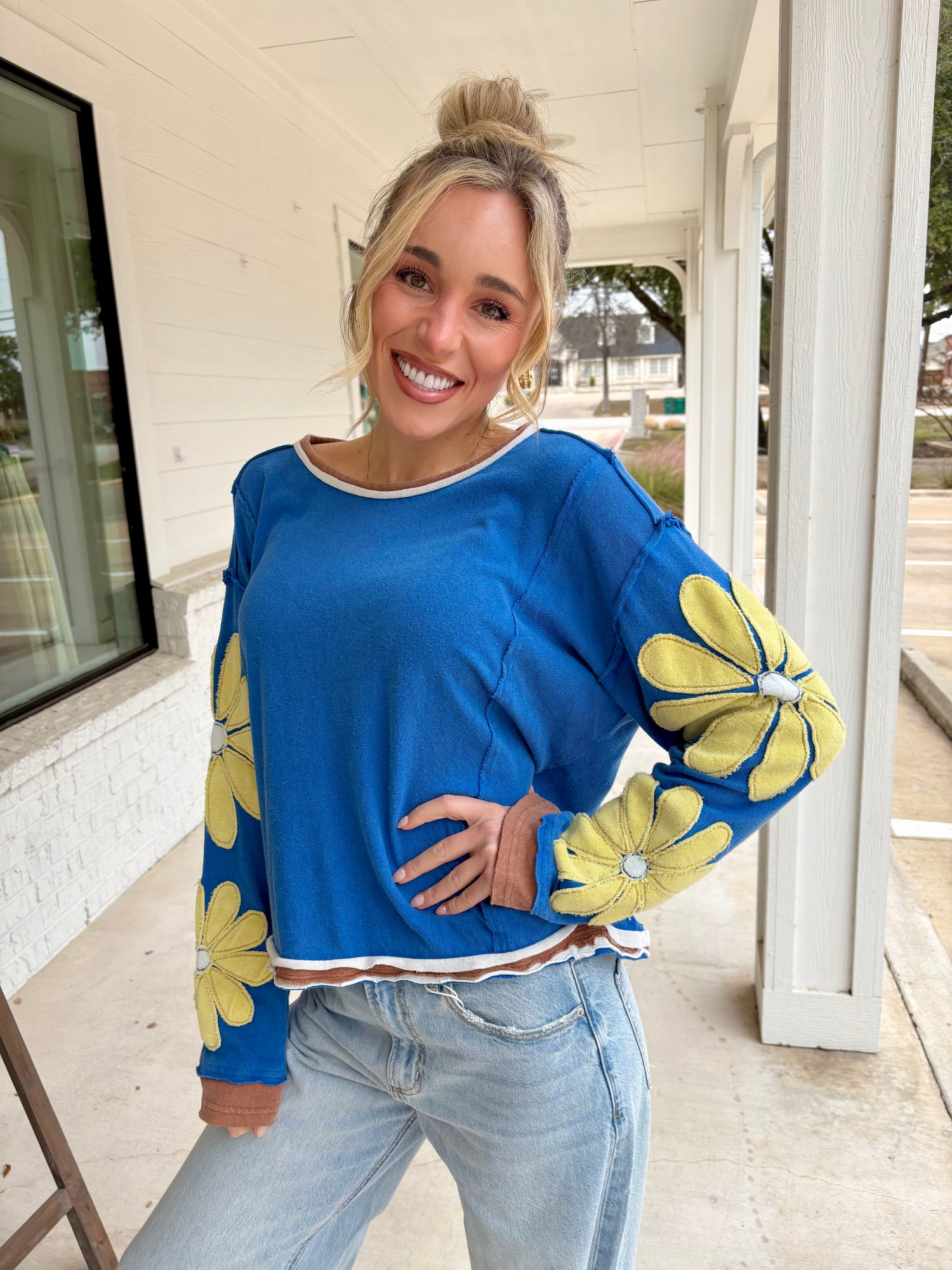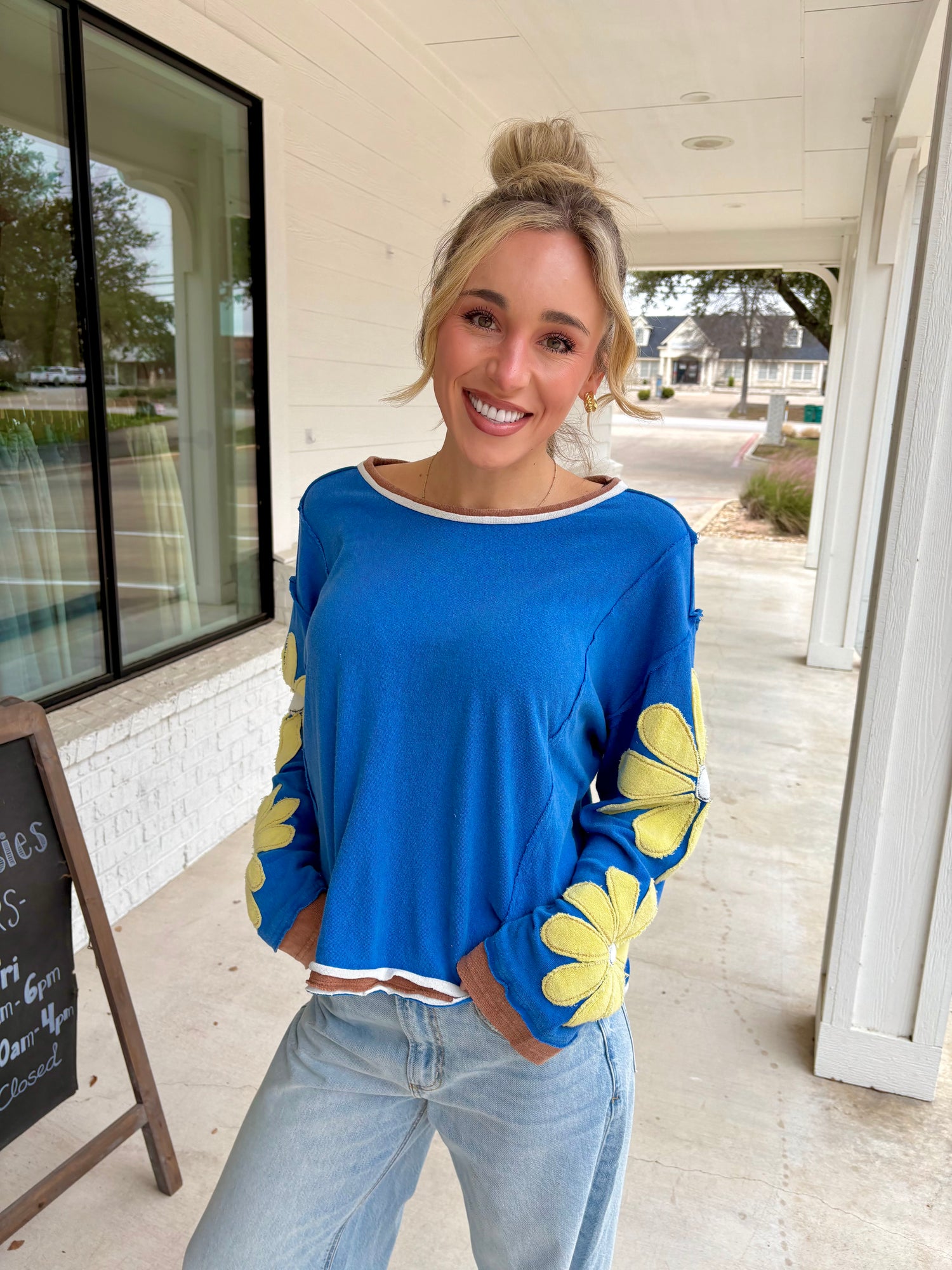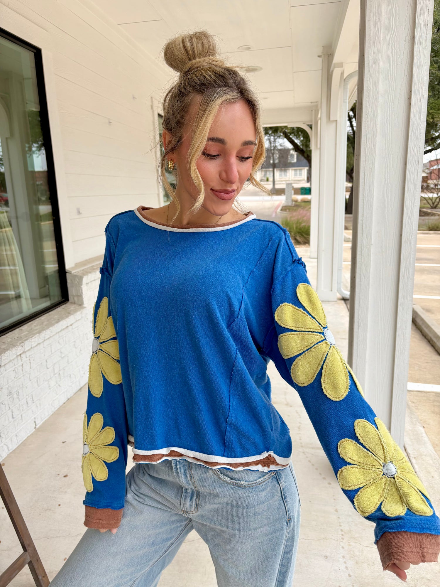 Features: Soft cotton fabrication, subtle scoop neckline, drop-shoulder sleeves, layered detail, raw trim, oversized star detail at sleeves, raised seaming