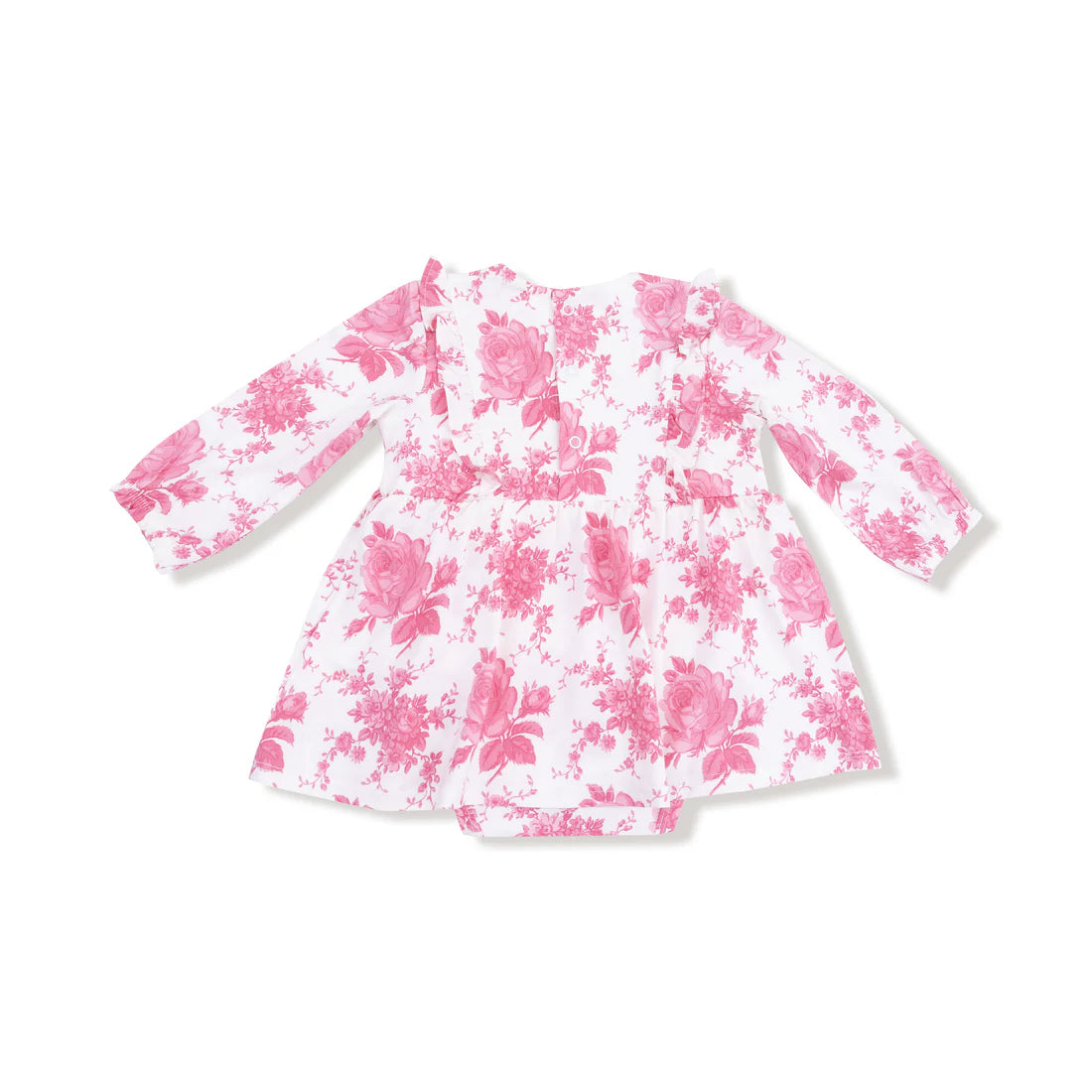 Vintage Pink Roses Ruffle Bodysuit Dress