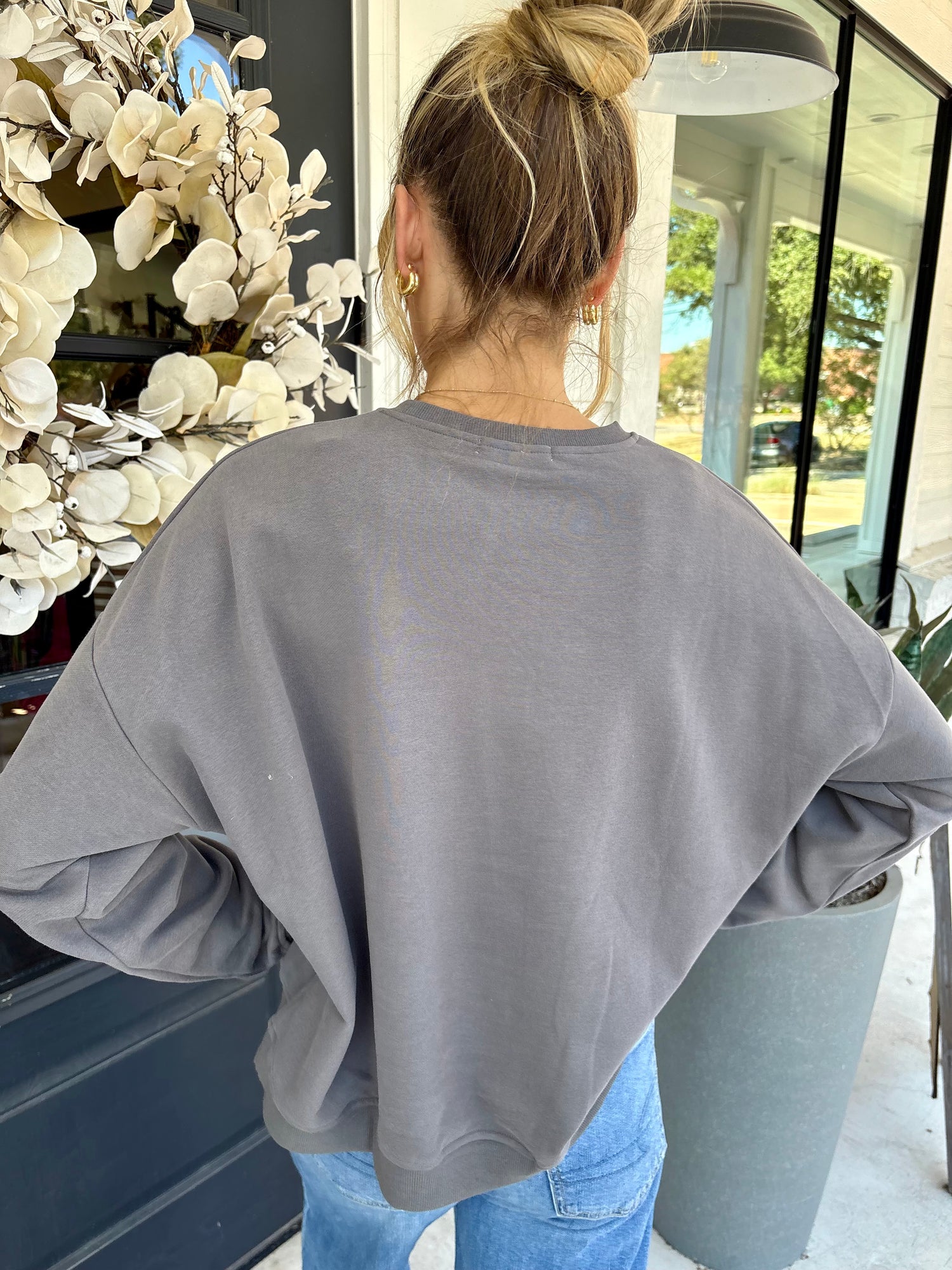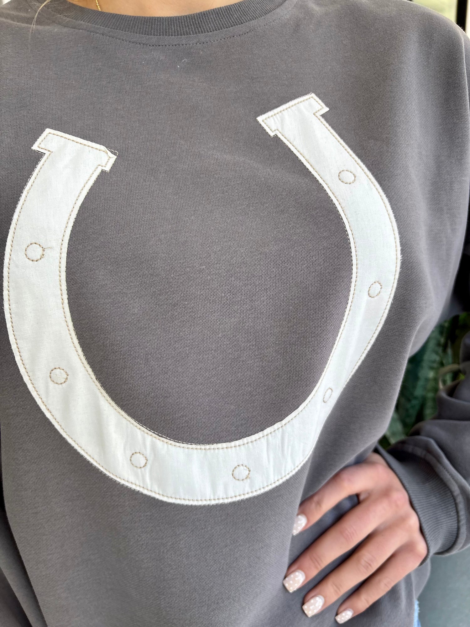 This cozy horseshoe pullover top blends casual comfort with a touch of western-inspired style. Made from soft, breathable fabric, it features a relaxed fit and a bold horseshoe graphic on the front. Perfect for layering or wearing on its own for an easy, laid-back look.