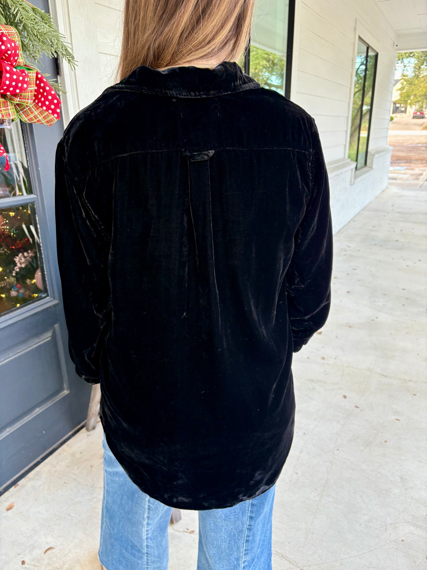 The garment-washed velvet provides a refined sheen and comfort, perfect for adding a touch of sophistication to any wardrobe!